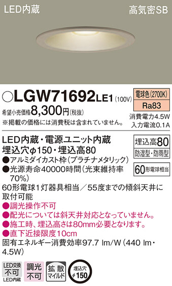 Panasonic ¥À¥¦¥ó¥é¥¤¥È LGW71692LE1