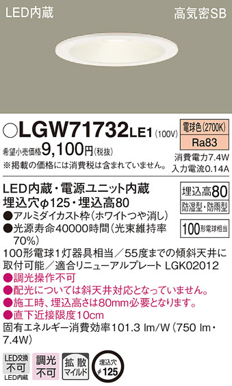 Panasonic ¥À¥¦¥ó¥é¥¤¥È LGW71732LE1