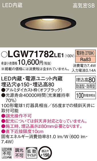 Panasonic ¥À¥¦¥ó¥é¥¤¥È LGW71782LE1