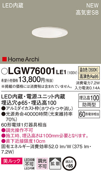 Panasonic ¥À¥¦¥ó¥é¥¤¥È LGW76001LE1
