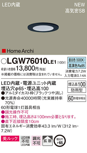 Panasonic ¥À¥¦¥ó¥é¥¤¥È LGW76010LE1