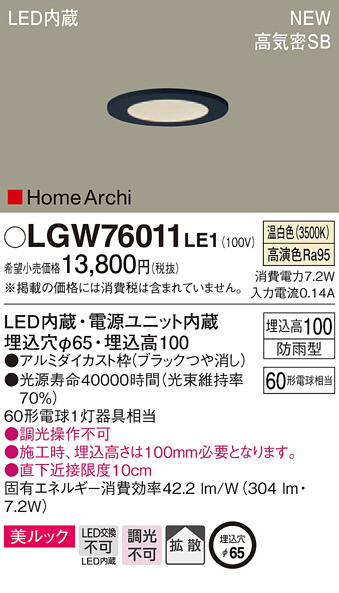 Panasonic ¥À¥¦¥ó¥é¥¤¥È LGW76011LE1