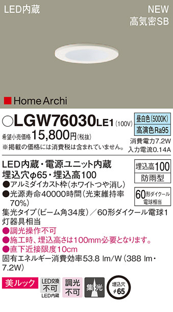 Panasonic ¥À¥¦¥ó¥é¥¤¥È LGW76030LE1
