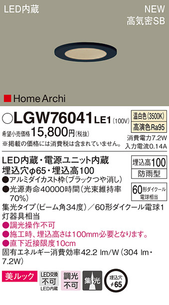 Panasonic ¥À¥¦¥ó¥é¥¤¥È LGW76041LE1