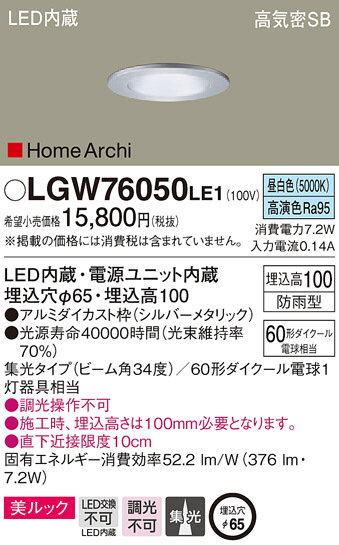 Panasonic ¥À¥¦¥ó¥é¥¤¥È LGW76050LE1