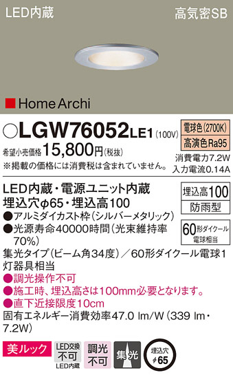 Panasonic ¥À¥¦¥ó¥é¥¤¥È LGW76052LE1