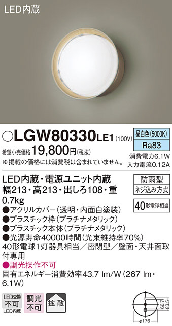 Panasonic ¥¨¥¯¥¹¥Æ¥ê¥¢¥é¥¤¥È LGW80330LE1