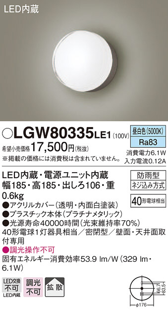 Panasonic ¥¨¥¯¥¹¥Æ¥ê¥¢¥é¥¤¥È LGW80335LE1