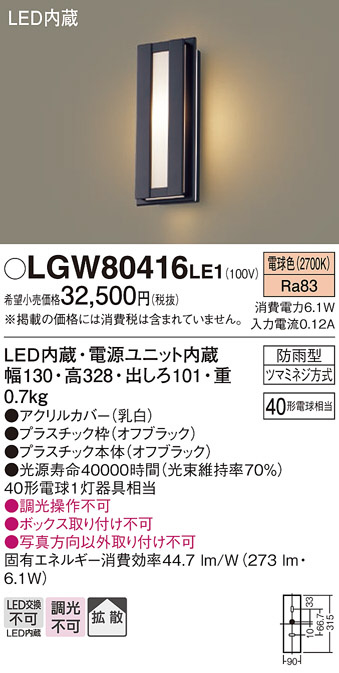 Panasonic ¥¨¥¯¥¹¥Æ¥ê¥¢¥é¥¤¥È LGW80416LE1
