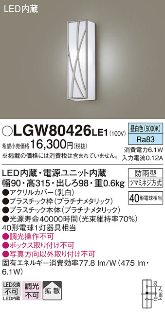 Panasonic ¥¨¥¯¥¹¥Æ¥ê¥¢¥é¥¤¥È LGW80426LE1
