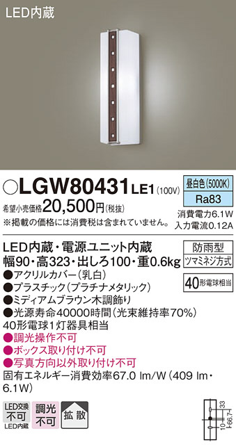 Panasonic ¥¨¥¯¥¹¥Æ¥ê¥¢¥é¥¤¥È LGW80431LE1