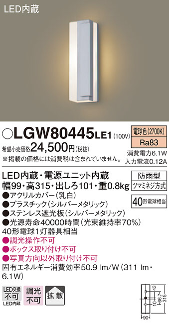 Panasonic ¥¨¥¯¥¹¥Æ¥ê¥¢¥é¥¤¥È LGW80445LE1