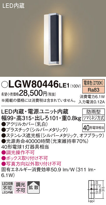 Panasonic ¥¨¥¯¥¹¥Æ¥ê¥¢¥é¥¤¥È LGW80446LE1