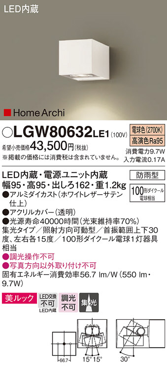 Panasonic ¥¨¥¯¥¹¥Æ¥ê¥¢¥é¥¤¥È LGW80632LE1