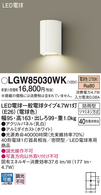 Panasonic ¥¨¥¯¥¹¥Æ¥ê¥¢¥é¥¤¥È LGW85030WK
