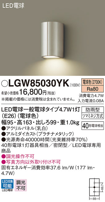 Panasonic ¥¨¥¯¥¹¥Æ¥ê¥¢¥é¥¤¥È LGW85030YK