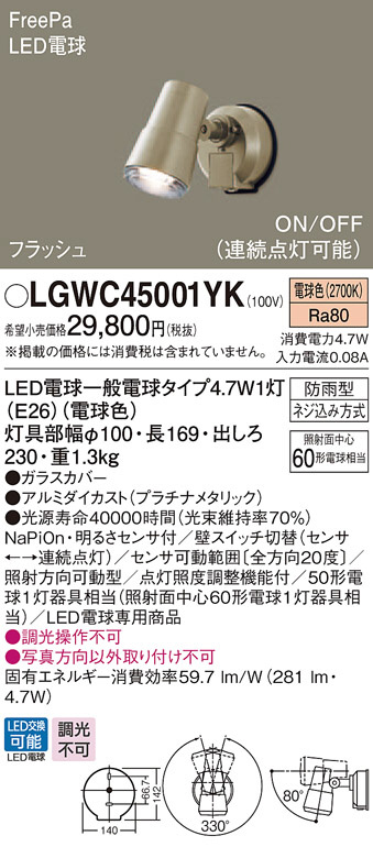 Panasonic ¥¨¥¯¥¹¥Æ¥ê¥¢¥¹¥Ý¥Ã¥È¥é¥¤¥È LGWC45001YK
