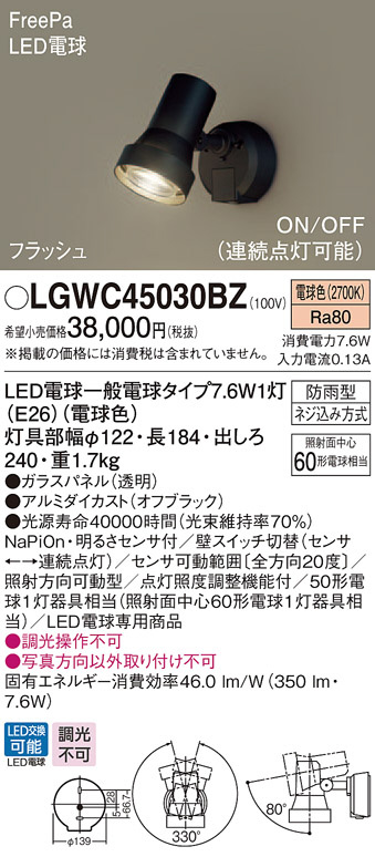 Panasonic ¥¨¥¯¥¹¥Æ¥ê¥¢¥é¥¤¥È LGWC45030BZ