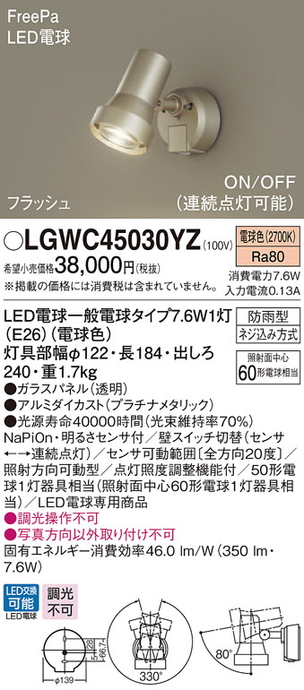 Panasonic ¥¨¥¯¥¹¥Æ¥ê¥¢¥é¥¤¥È LGWC45030YZ