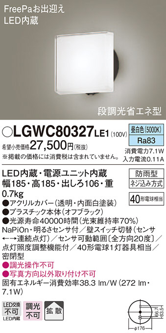 Panasonic ¥¨¥¯¥¹¥Æ¥ê¥¢¥é¥¤¥È LGWC80327LE1