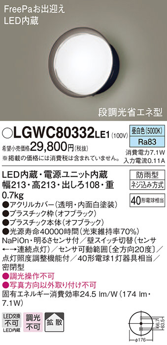Panasonic ¥¨¥¯¥¹¥Æ¥ê¥¢¥é¥¤¥È LGWC80332LE1
