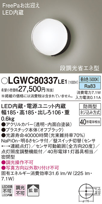 Panasonic ¥¨¥¯¥¹¥Æ¥ê¥¢¥é¥¤¥È LGWC80337LE1