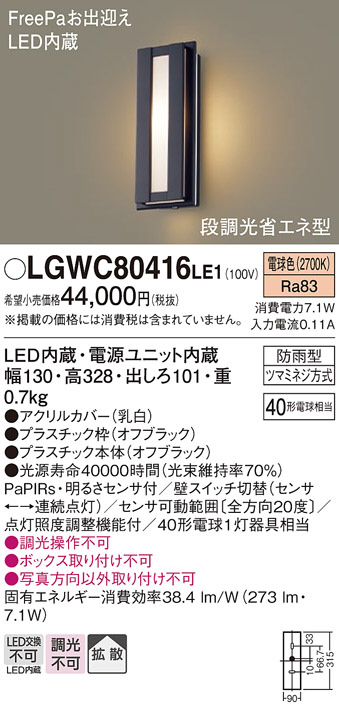 Panasonic ¥¨¥¯¥¹¥Æ¥ê¥¢¥é¥¤¥È LGWC80416LE1