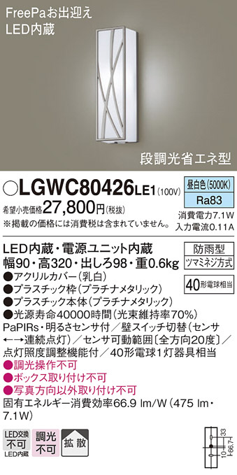 Panasonic ¥¨¥¯¥¹¥Æ¥ê¥¢¥é¥¤¥È LGWC80426LE1