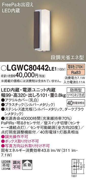 Panasonic ¥¨¥¯¥¹¥Æ¥ê¥¢¥é¥¤¥È LGWC80442LE1
