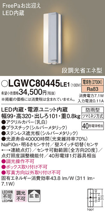 Panasonic ¥¨¥¯¥¹¥Æ¥ê¥¢¥é¥¤¥È LGWC80445LE1