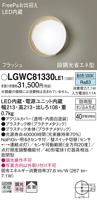 Panasonic ¥¨¥¯¥¹¥Æ¥ê¥¢¥é¥¤¥È LGWC81330LE1