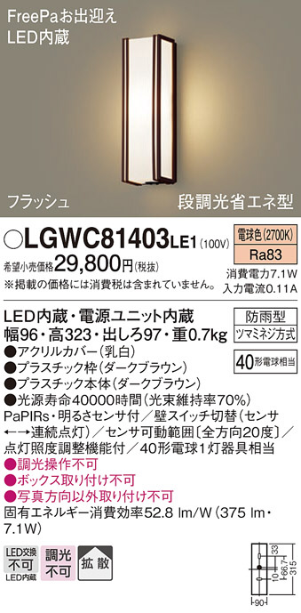 Panasonic ¥¨¥¯¥¹¥Æ¥ê¥¢¥é¥¤¥È LGWC81403LE1