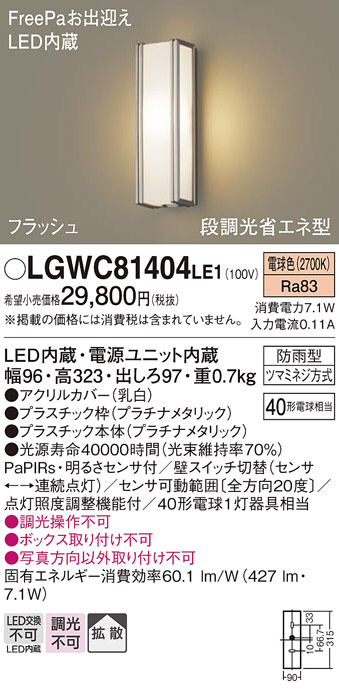 Panasonic ¥¨¥¯¥¹¥Æ¥ê¥¢¥é¥¤¥È LGWC81404LE1