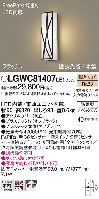Panasonic ¥¨¥¯¥¹¥Æ¥ê¥¢¥é¥¤¥È LGWC81407LE1