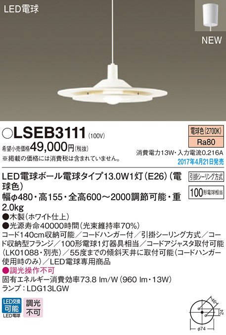 Panasonic LED ¥Ú¥ó¥À¥ó¥È¥é¥¤¥È LSEB3111