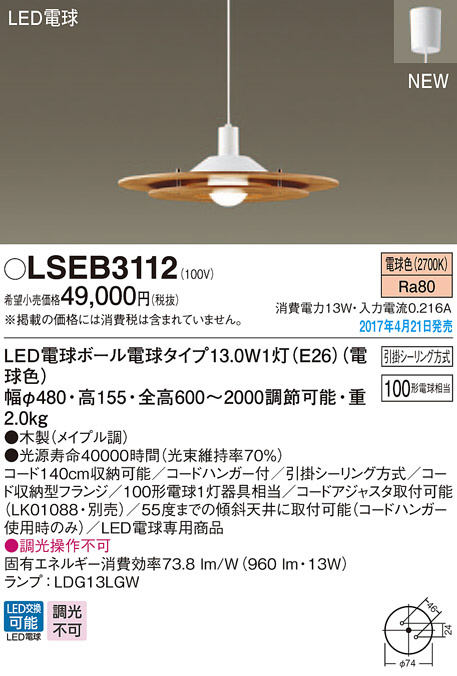 Panasonic LED ¥Ú¥ó¥À¥ó¥È¥é¥¤¥È LSEB3112