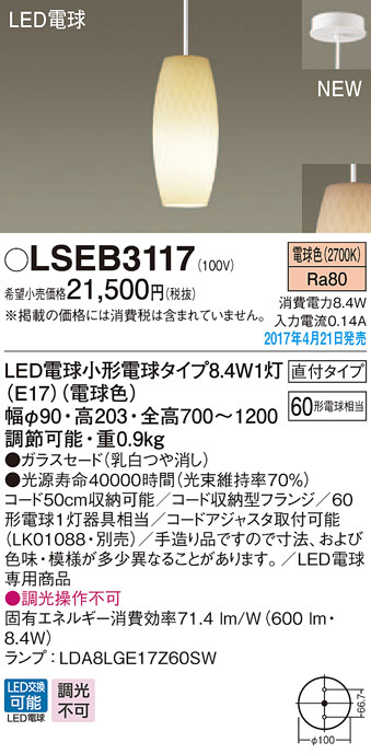 Panasonic LED ¥Ú¥ó¥À¥ó¥È¥é¥¤¥È LSEB3117