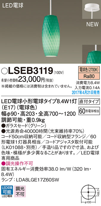 Panasonic LED ¥Ú¥ó¥À¥ó¥È¥é¥¤¥È LSEB3119