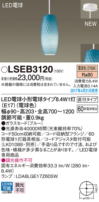 Panasonic LED ¥Ú¥ó¥À¥ó¥È¥é¥¤¥È LSEB3120