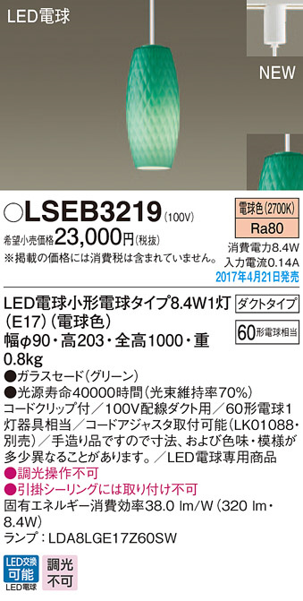 Panasonic LED ¥Ú¥ó¥À¥ó¥È¥é¥¤¥È LSEB3219