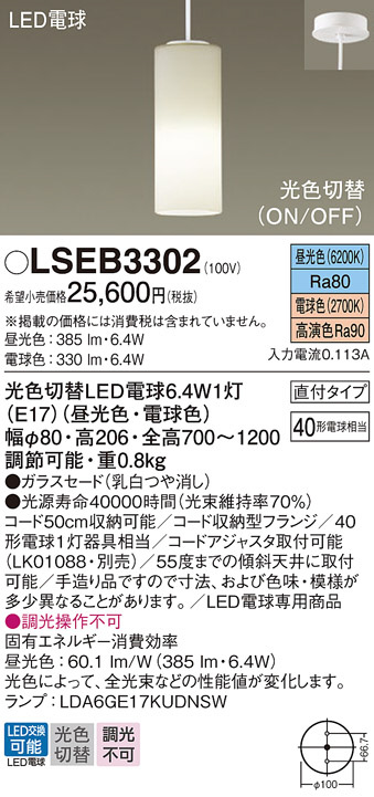 Panasonic ¥Ú¥ó¥À¥ó¥È LSEB3302
