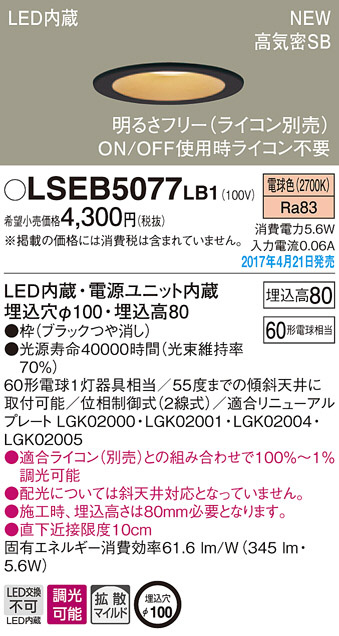 Panasonic LED ¥À¥¦¥ó¥é¥¤¥È LSEB5077LB1