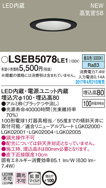 Panasonic LED ¥À¥¦¥ó¥é¥¤¥È LSEB5078LE1