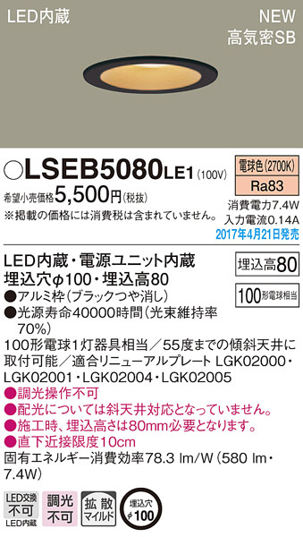 Panasonic LED ¥À¥¦¥ó¥é¥¤¥È LSEB5080LE1