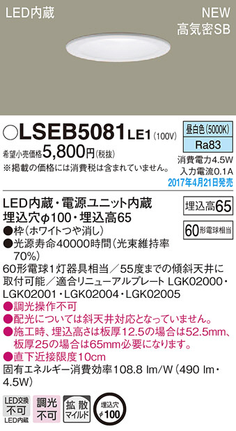 Panasonic LED ¥À¥¦¥ó¥é¥¤¥È LSEB5081LE1