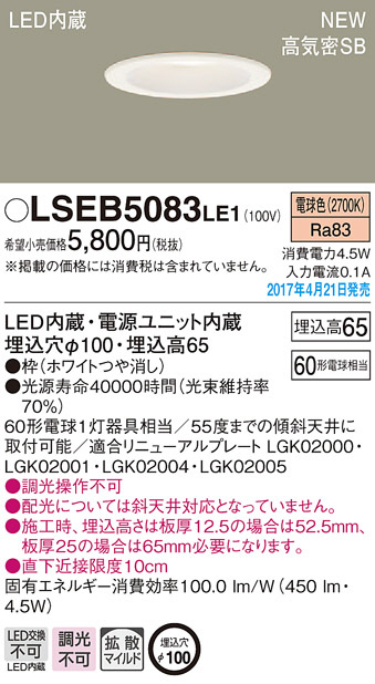 Panasonic LED ¥À¥¦¥ó¥é¥¤¥È LSEB5083LE1