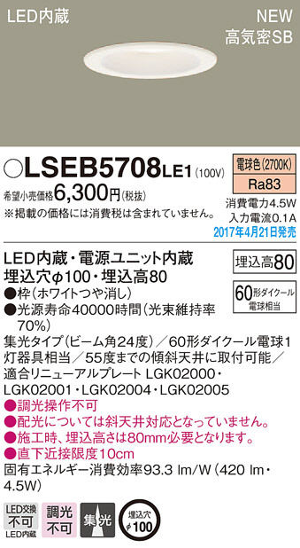 Panasonic LED ¥À¥¦¥ó¥é¥¤¥È LSEB5708LE1