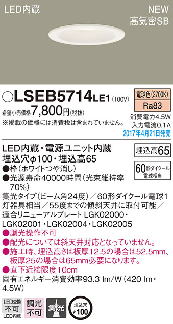 Panasonic LED ¥À¥¦¥ó¥é¥¤¥È LSEB5714LE1