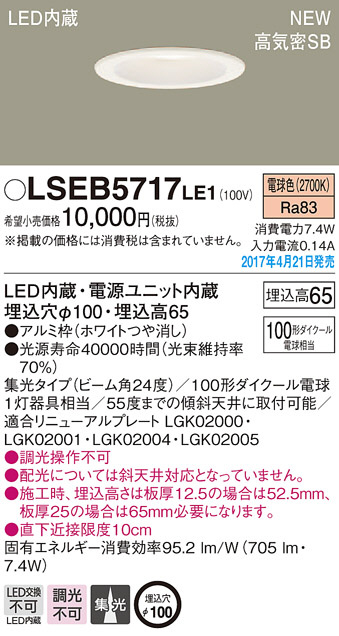 Panasonic LED ¥À¥¦¥ó¥é¥¤¥È LSEB5717LE1