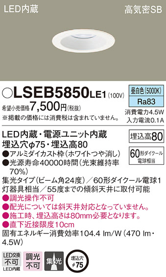 Panasonic ¥À¥¦¥ó¥é¥¤¥È LSEB5850LE1